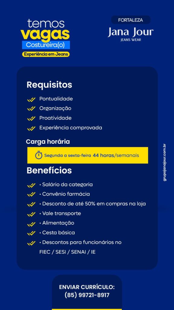 Os candidatos interessados deverão enviar currículo diretamente para o link de WhatsApp: https://wa.me/5585991821440