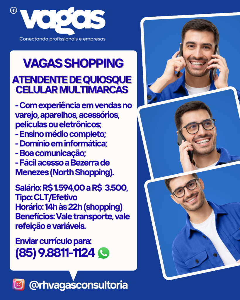 Atendente de Quiosque de Celular | Atendente de Loja de Celular