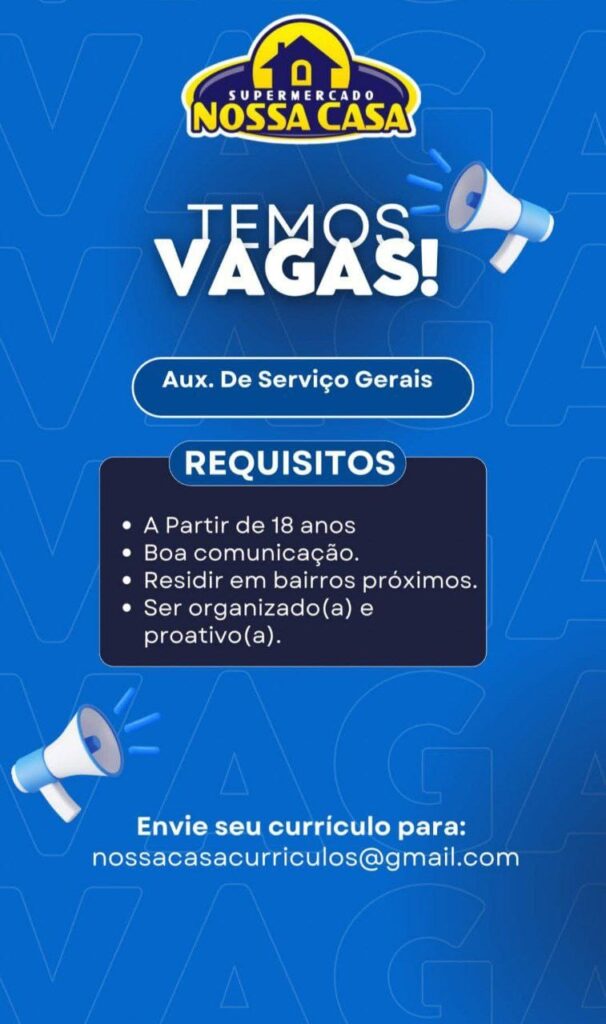 Auxiliar de Serviços Gerais, Operador de Caixa, Repositor de FLV