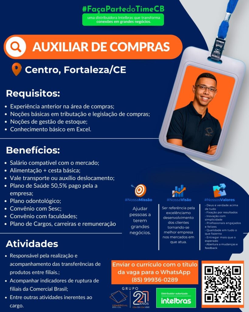Vendedor(a), Vendedor(a) Televendas, Promotor Técnico, Estoquista, Gerente, Aprendiz