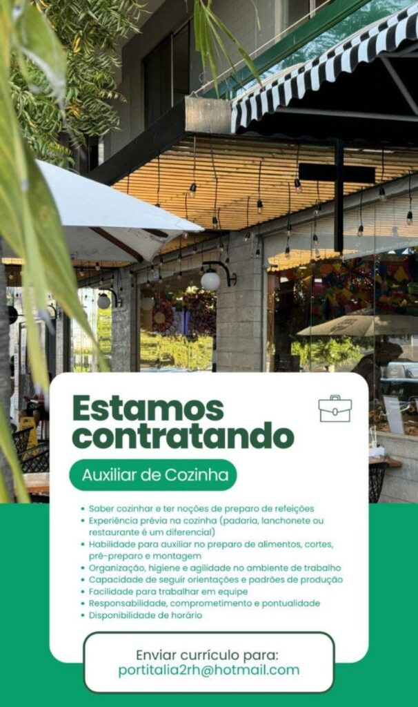 Auxiliar de Cozinha, Atendente, Estoquista