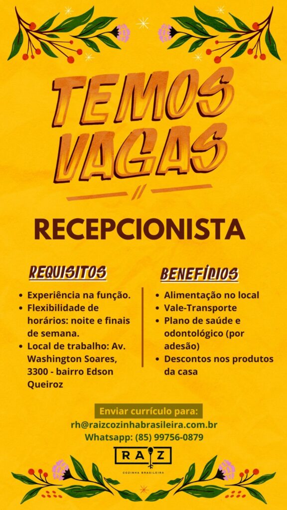 Cozinheiro(a), Recreadora, Recepcionista, Garçom