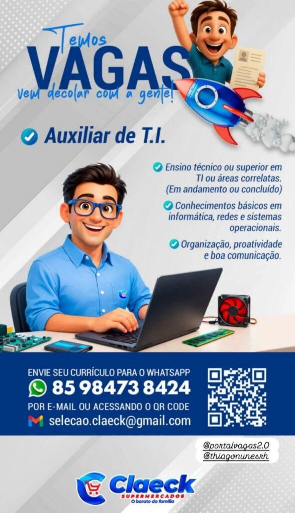 Auxiliar de Serviços Gerais, Operador de Televendas, Motorista, Auxiliar de Almoxarifado