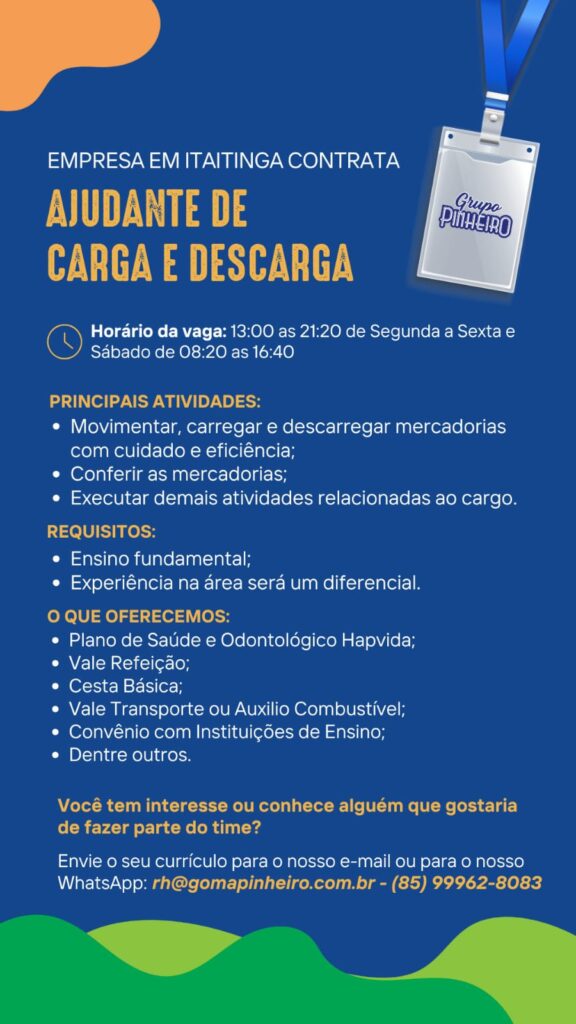 Consultor de Vendas, Supervisor de Logística, Ajudante de Carga e Descarga