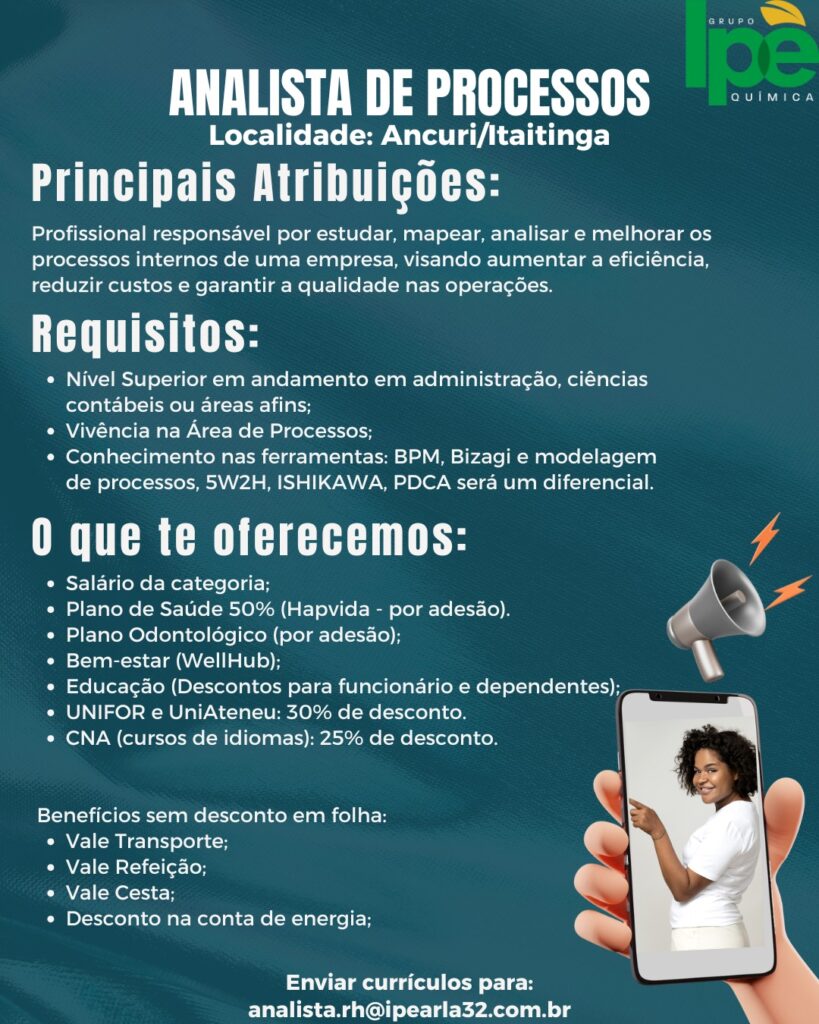 Analista de RH, Analista de DP, Analista de Logística, Analista de Processos, Assistente de Monitoramento, Auxiliar de Produção