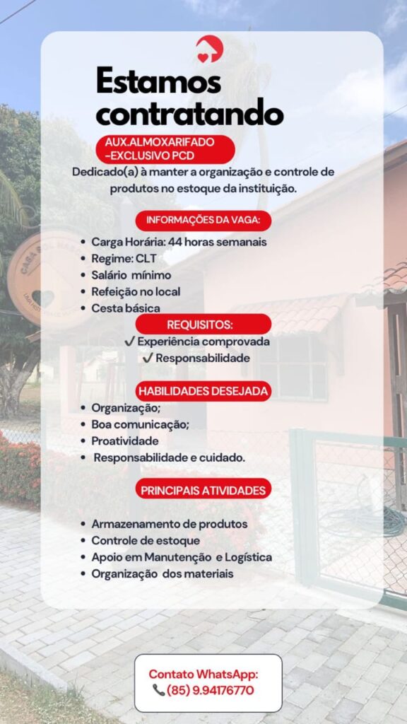 Auxiliar de Almoxarifado, Auxiliar de Serviços Gerais, Cozinheira