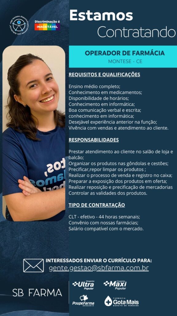 Entregador, Fiscal de Loja, Assistente de Marketing, Operador de Farmácia, Frente de Loja, Perfumista, Assistente de RH,