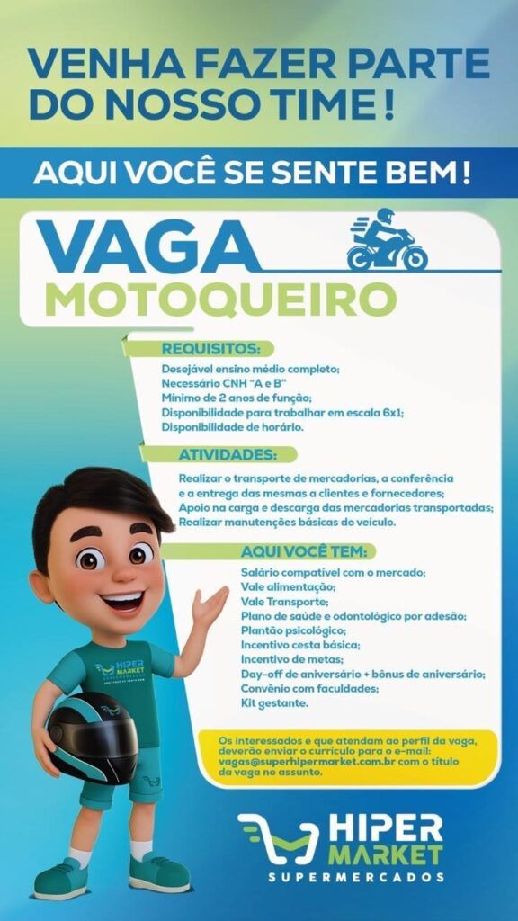 Motoqueiro, Fiscal de Caixa, Líder de Hortifruti, Repositor de Frios, Repositor de Hortifruti, PCD, Líder de Mercearia, Comprador de Perecíveis