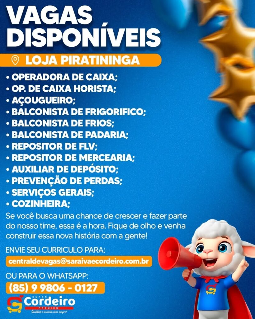 Repositor, Balconista, Aprendiz, Operador de Caixa, Estagiário