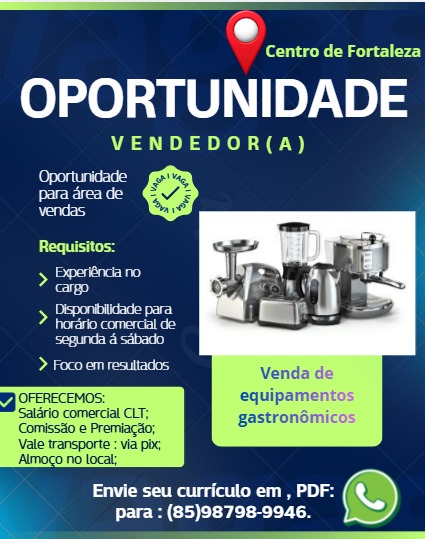 Necessário ter experiência com vendas presencial ou on-line.
