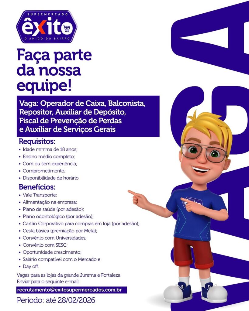 Operador de Caixa, Balconista, Repositor, Auxiliar de Depósito, Fiscal de Prevenção de Perdas, Auxiliar de Serviços Gerais, Gerente, Subgerente de Loja, Motorista, Açougueiro, Conferente, Frente de Loja