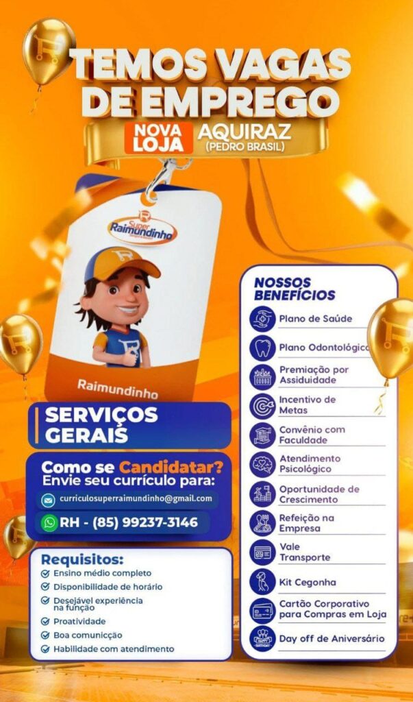 Repositor, Auxiliar de Estoque, Serviços Gerais