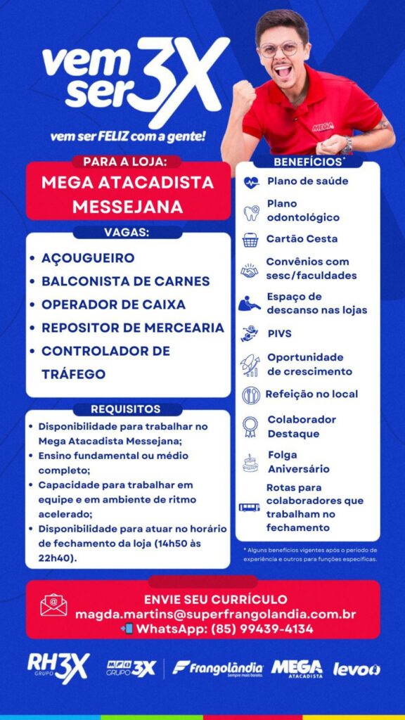 Encarregado Frente de Loja, Encarregado de Padaria, Encarregado de Perecíveis, Entregador, Repositor de Perecíveis, Fiscal de Caixa, Fiscal de Prevenção de Perdas, Subgerente, Gerente, Promotor(a) de Cartão, Repositor de Mercearia, Atendente, Operador de Empilhadeira, Operador(a) de Caixa, Jovem Aprendiz, Açougueiro, Assistente Comercial,