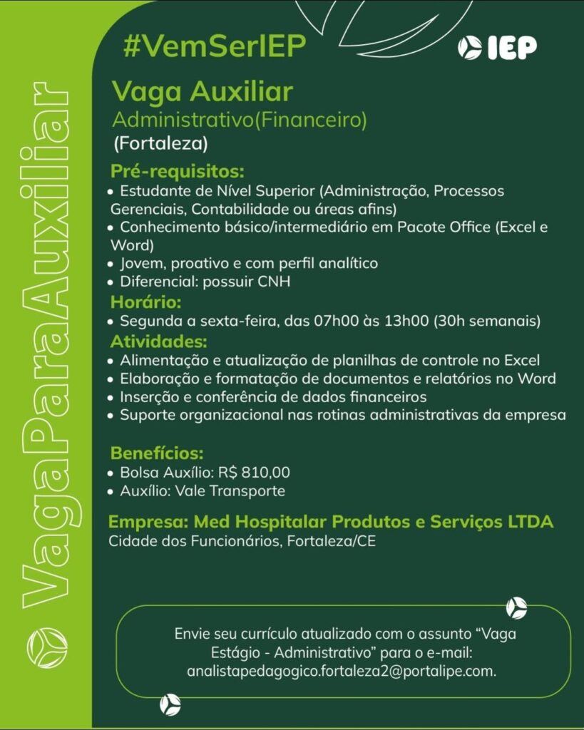 Estágio em Qualidade, Estágio em Administração, Estágio em Vendas, Auxiliar Administrativo, Estágio em Marketing