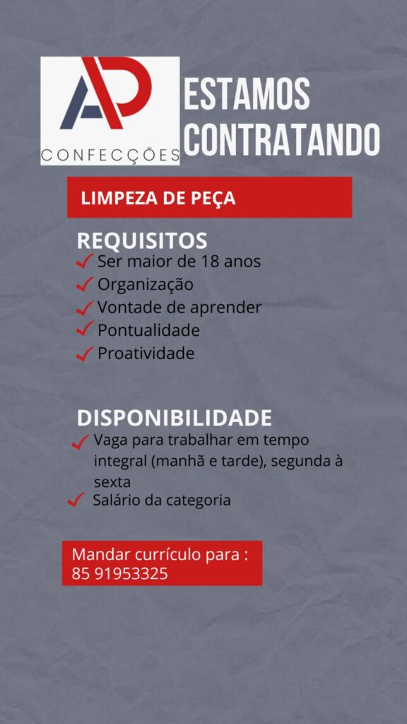 Enviar currículo atualizado em PDF para: (85) 2138-8955Necessário ter experiência com vendas de serviços ou presencial.