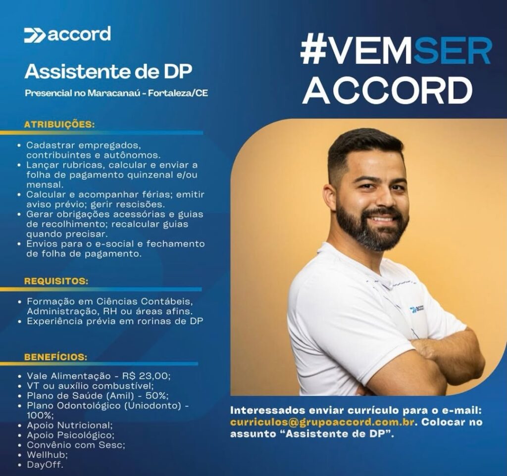 Analista Fiscal, Assistente Contábil, Assistente Contábil, Analista Contábil, Assistente de Departamento Pessoal, Analista de Departamento Pessoal