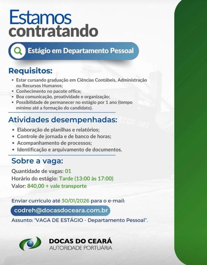 Estágio em Departamento Pessoal | Estágio em Contabilidade