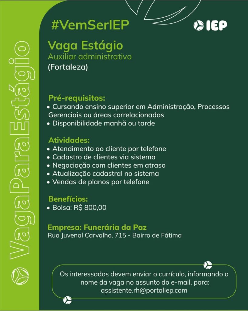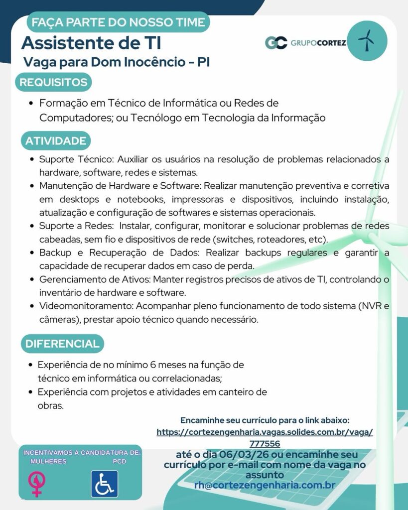 Estágio em Engenharia, Assistente de Segurança, Analista de Sustentabilidade, Assistente de TI,