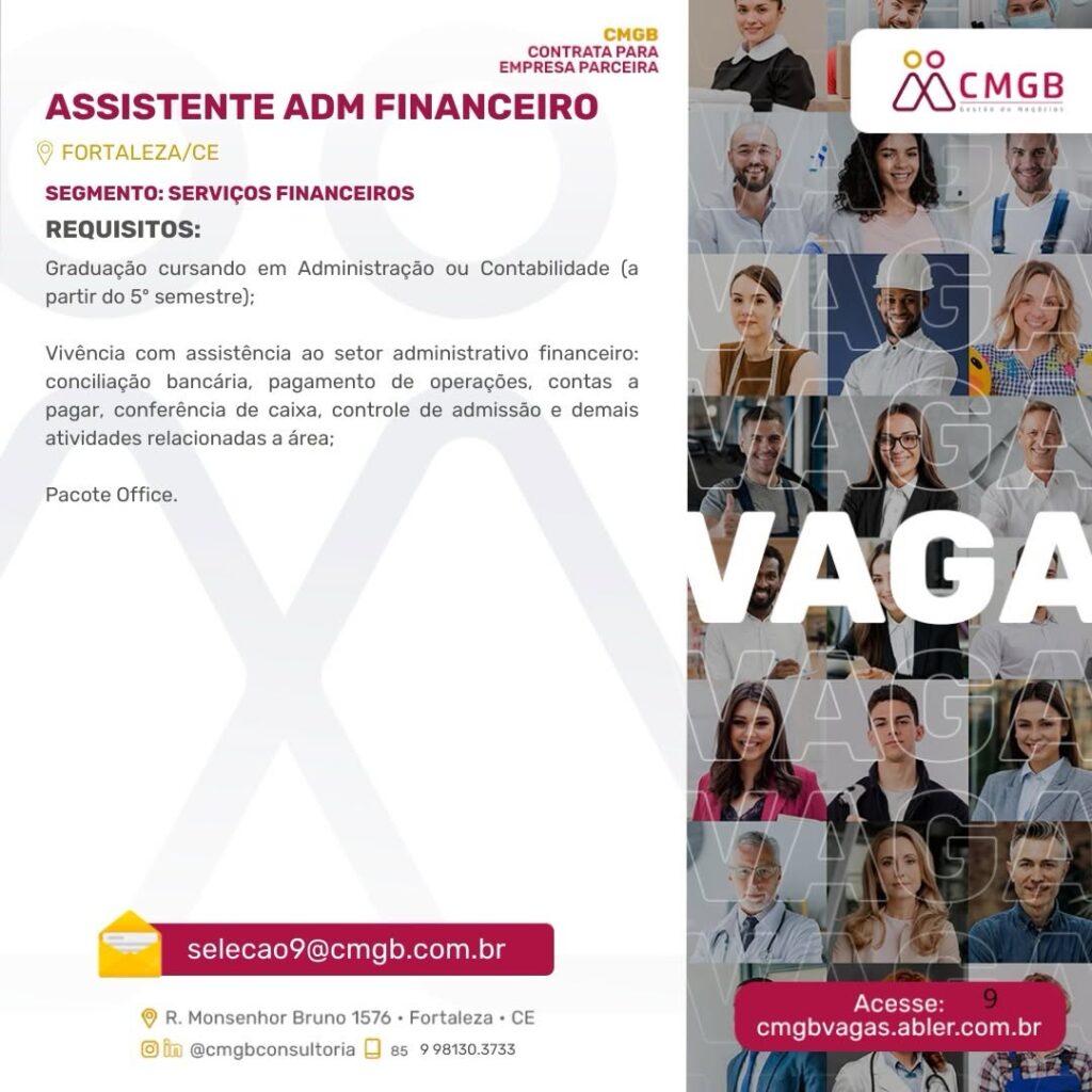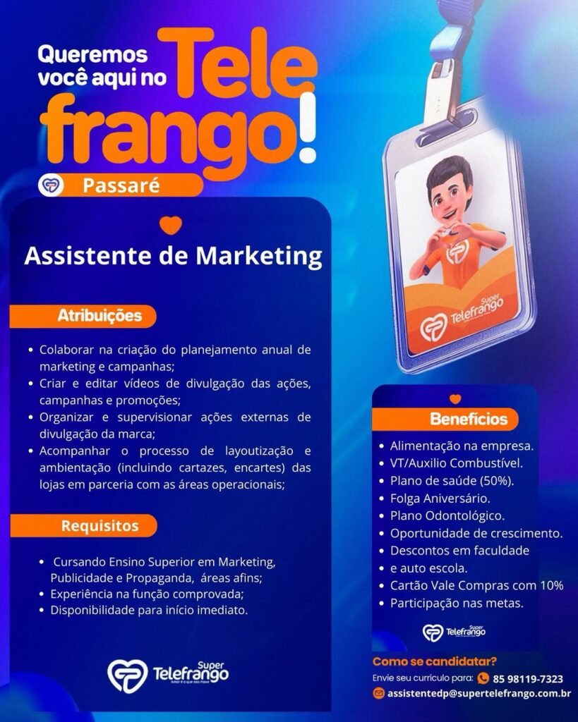 Motoqueiro, Auxiliar de Manutenção, Gestor de Marketing, Analista de TI, Analista Contábil, Supervisor(a) Comercial, Supervisor(a) de Vendas, Assistente Administrativo Financeiro, Assistente Comercial, Auxiliar de Manutenção, Executivo de Contas, Consultor(a) de Negócios