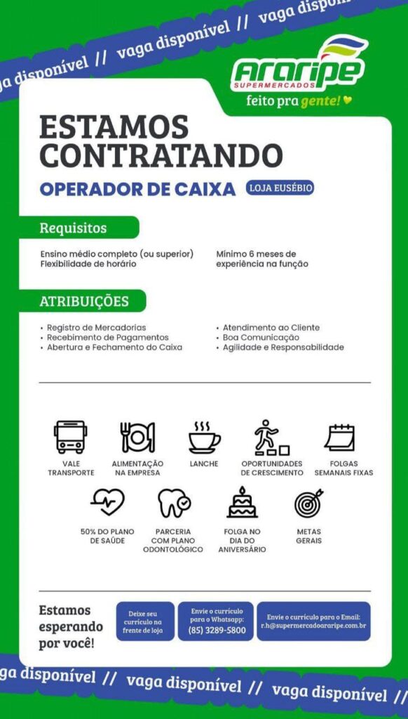 Operador(a) de Caixa, Repositor, Empacotador, Líder de FLV