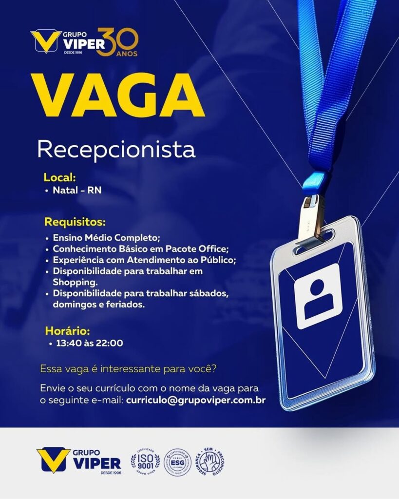 Recepcionista, Estágio em Financeiro, Balconista, Assistente de Pré-vendas, Coordenador(a) de Enfermagem, Analista de RH Pleno, Analista Contábil Pleno, Analista de Departamento Pessoal, Assistente Contábil Fiscal