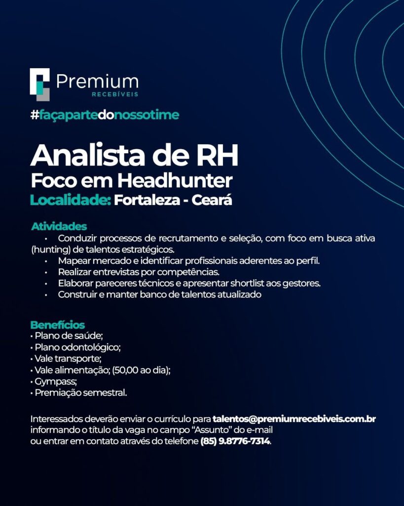 Consultor(a) de Vendas, Recepcionista, Analista de Marketing, Analista de RH, Analista de RH PL, Analista de Departamento Pessoal, Coordenador(a) de Gente e Gestão, Analista de RH, Coordenador(a) de RH, Analista de RH Sênior, Analista de RH Headhunter