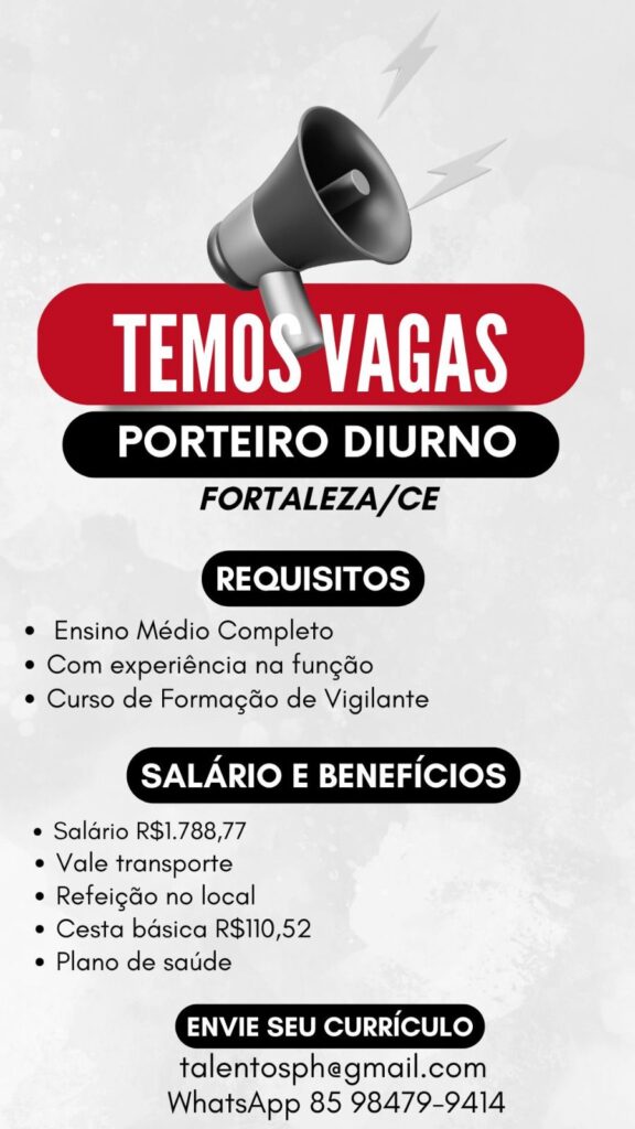 Auxiliar de Serviços Gerais Eusébio, Ajudante de Armazém, Auxiliar de Serviços Gerais, Porteiro