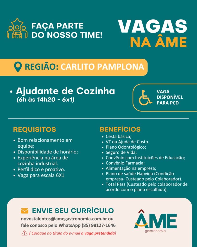 Ajudante de Cozinha, Atendente, Auxiliar de Cozinha