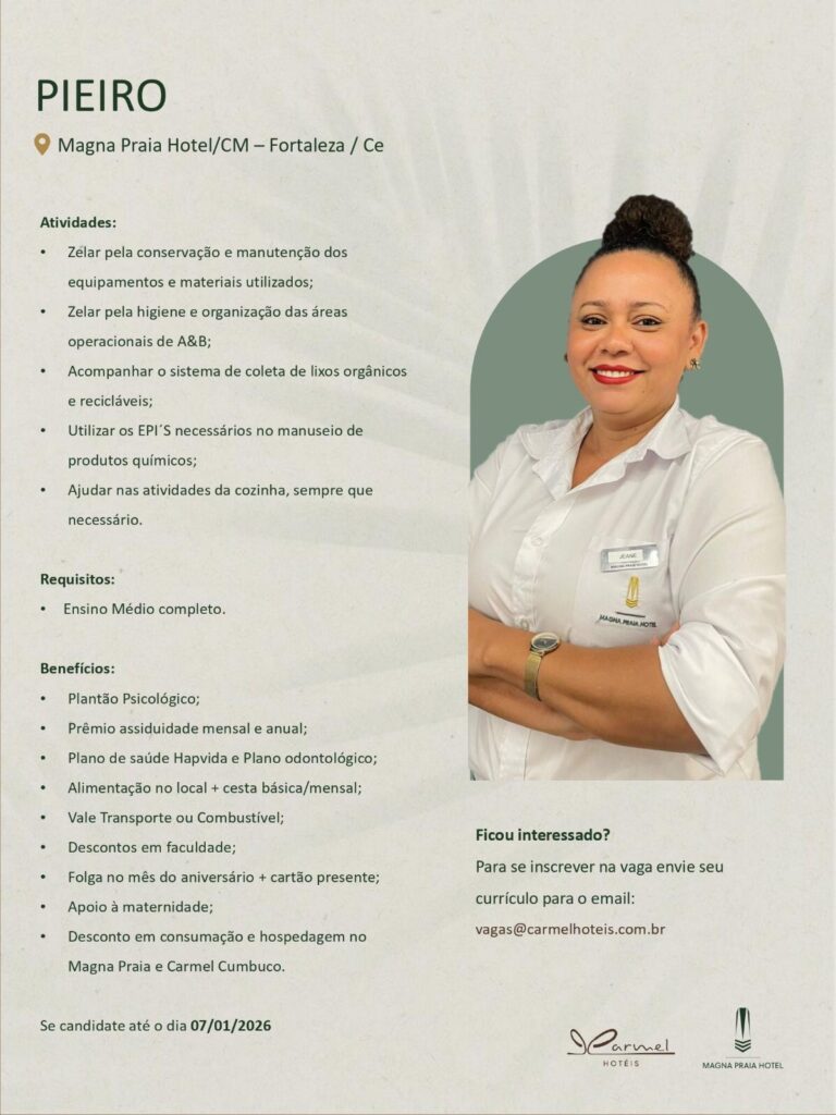 Cozinheiro Líder, Pieiro, Auxiliar de Cozinha