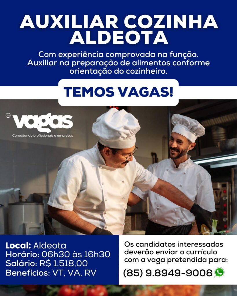 Monitora Infantil, Auxiliar de Cozinha, Auxiliar de Churrasqueiro, Atendente