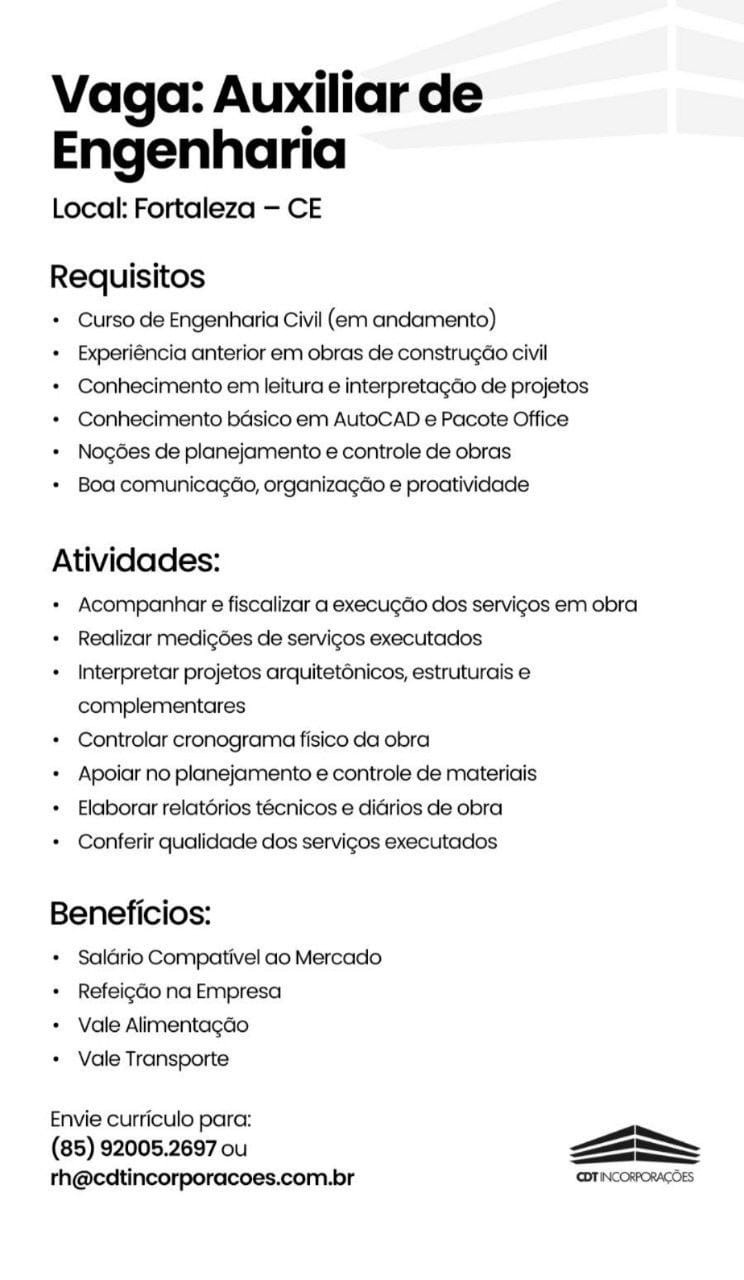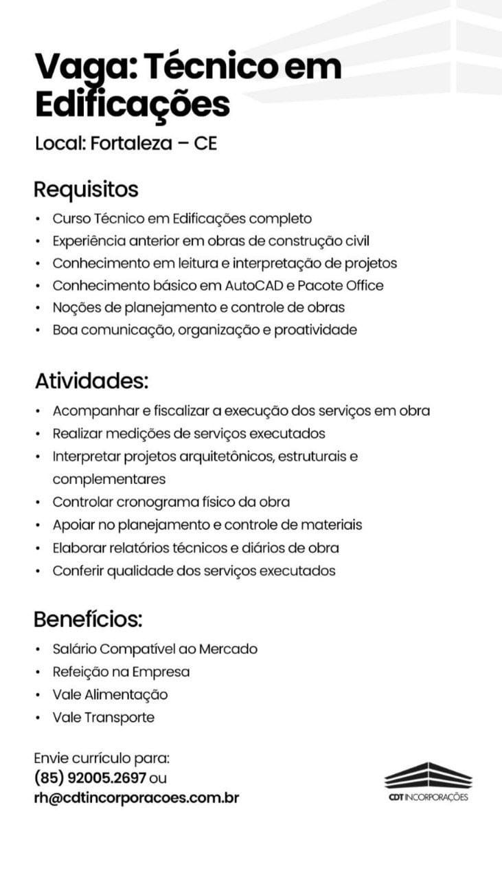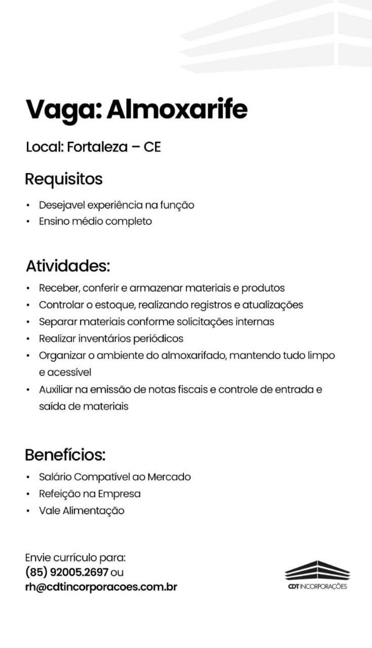Almoxarife, Técnico em Edificações, Auxiliar de Engenharia