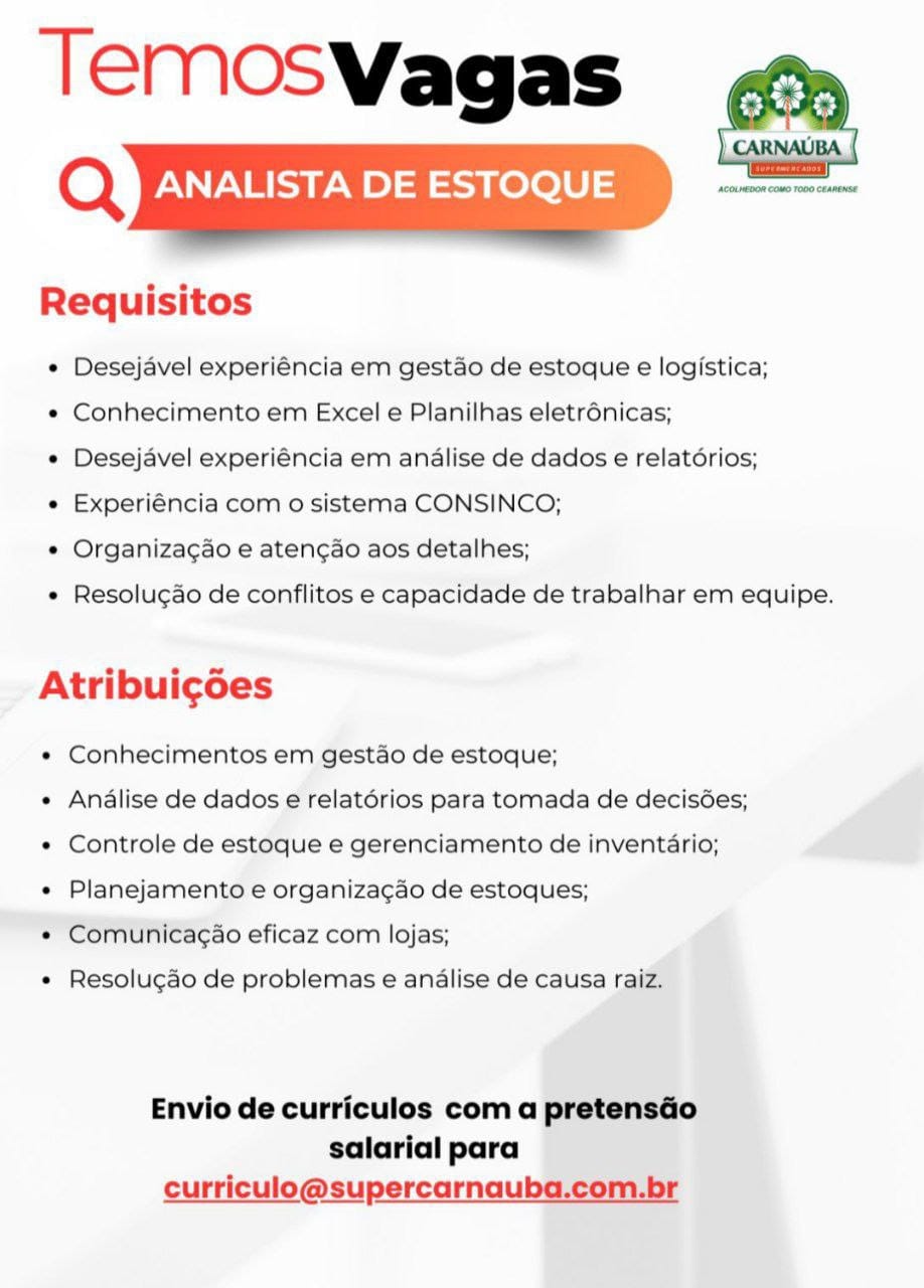 Nós não somos agência de empregos, não cobramos nada, nem antes e nem depois de você conseguir o seu emprego. Não somos nós que realizamos a seleção de currículos, também não realizamos entrevistas. Não nos responsabilizamos pelo envio de currículos. O envio de currículo deverá ser realizado pela pessoa interessada no e-mail que estiver na vaga.