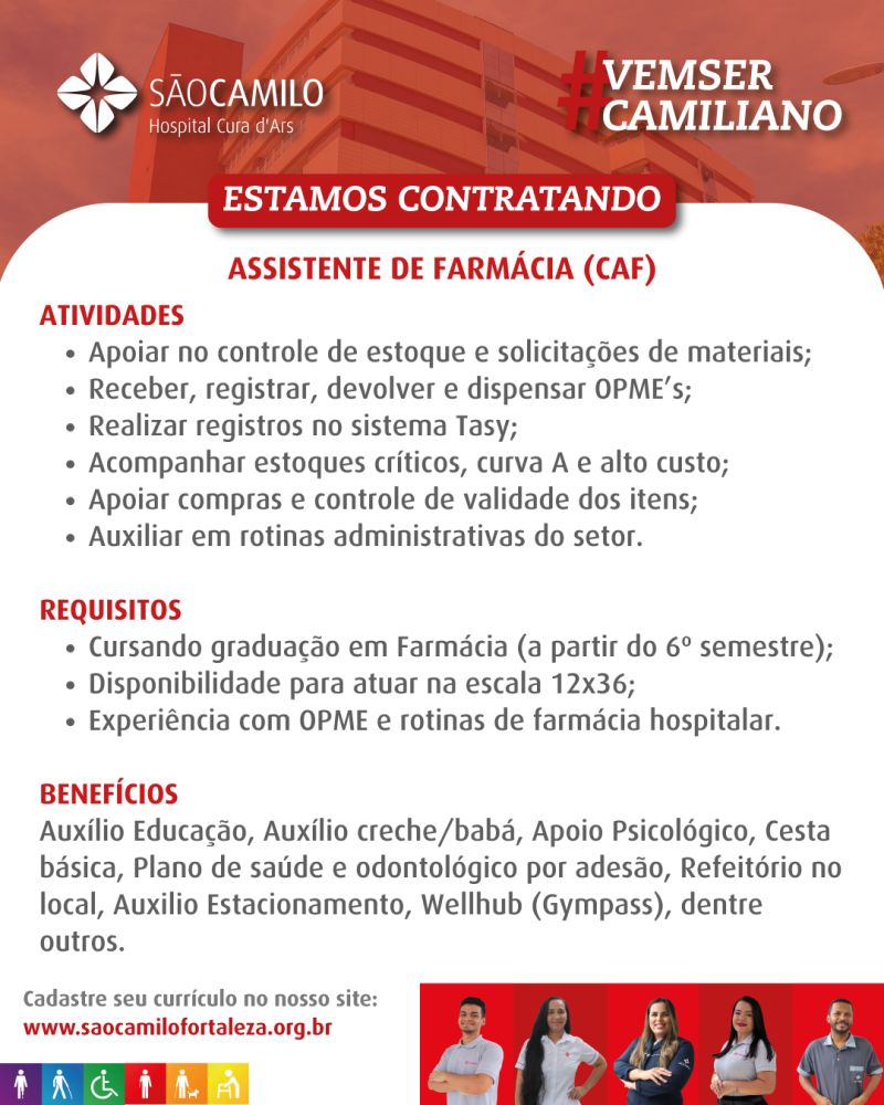 Analista de Trade Marketing, Assistente Financeiro, Analista de Gestão e Gente, Analista de Compras, Consultor(a) Comercial, Assistente de Farmácia, Técnico(a) de Enfermagem, Auxiliar de Serviços Gerais, Assistente de Recursos Humanos
