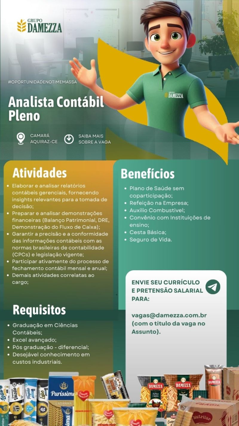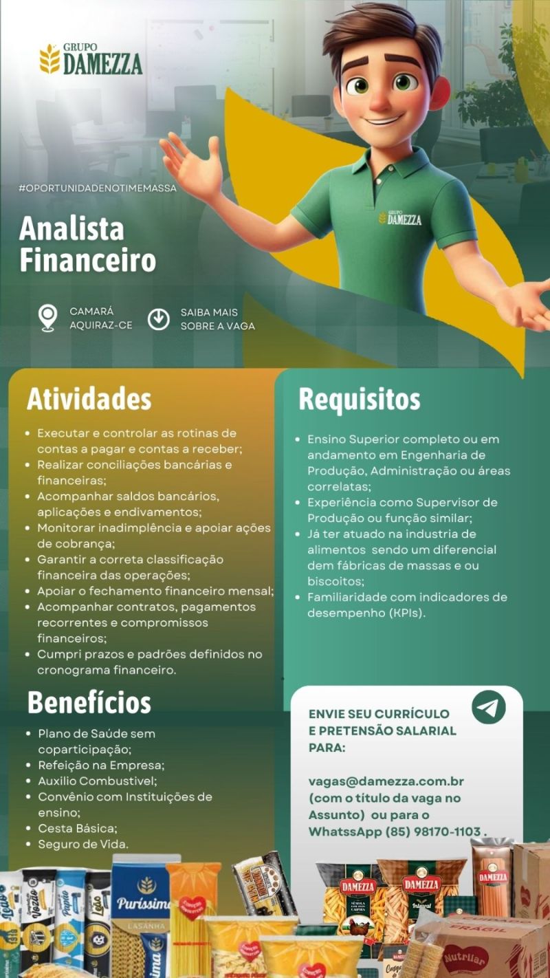 Analista Financeiro, Supervisor de Produção, Analista Contábil Pleno