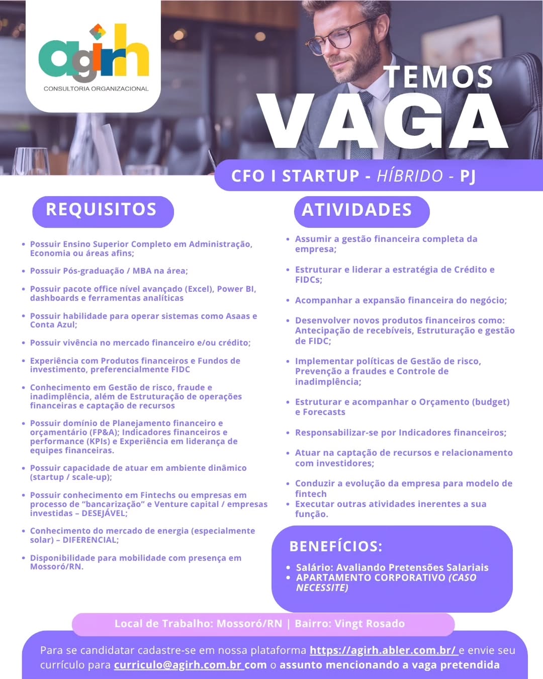 Nós não somos agência de empregos, não cobramos nada, nem antes e nem depois de você conseguir o seu emprego. Não somos nós que realizamos a seleção de currículos, também não realizamos entrevistas. Não nos responsabilizamos pelo envio de currículos. O envio de currículo deverá ser realizado pela pessoa interessada no e-mail que estiver na vaga.