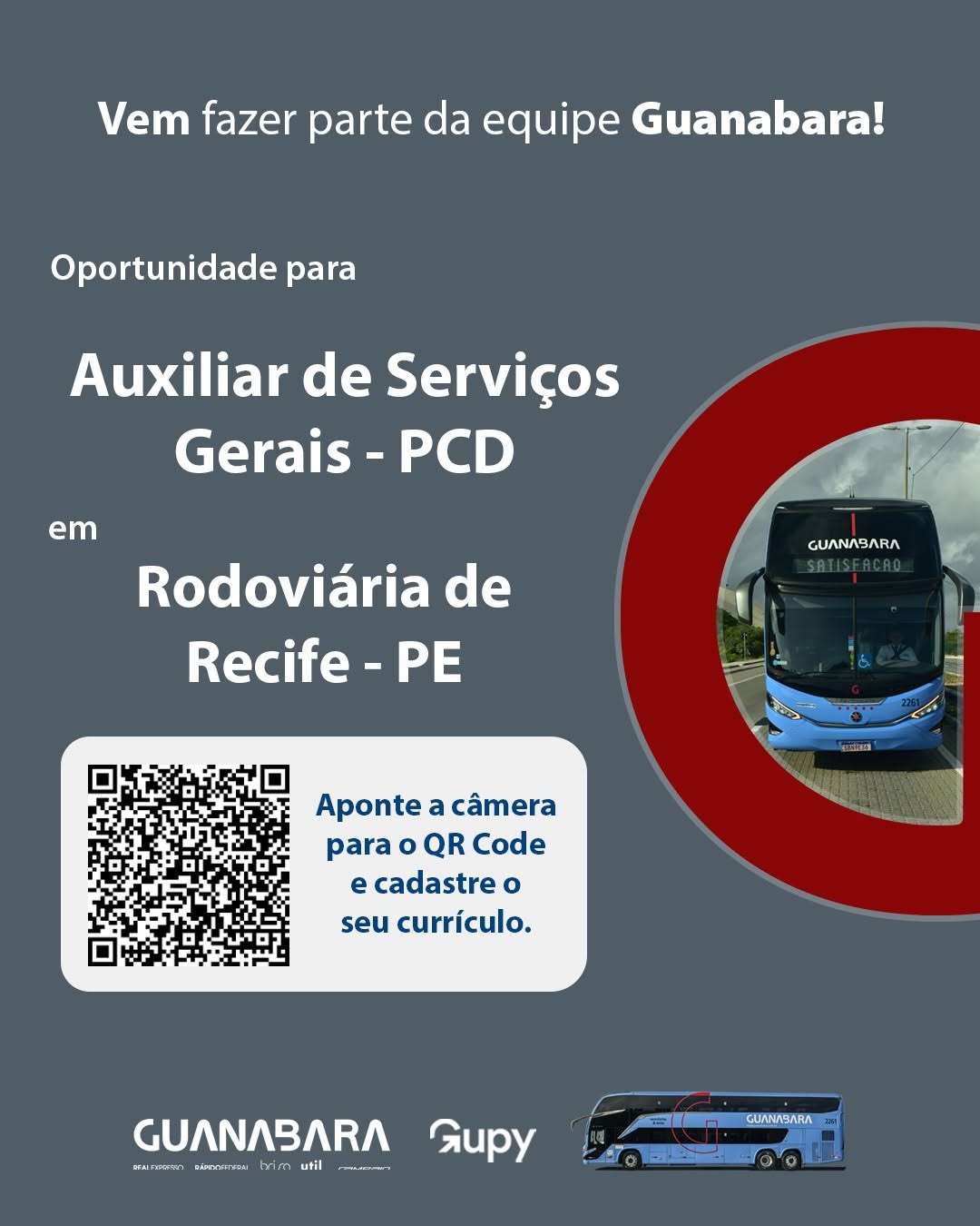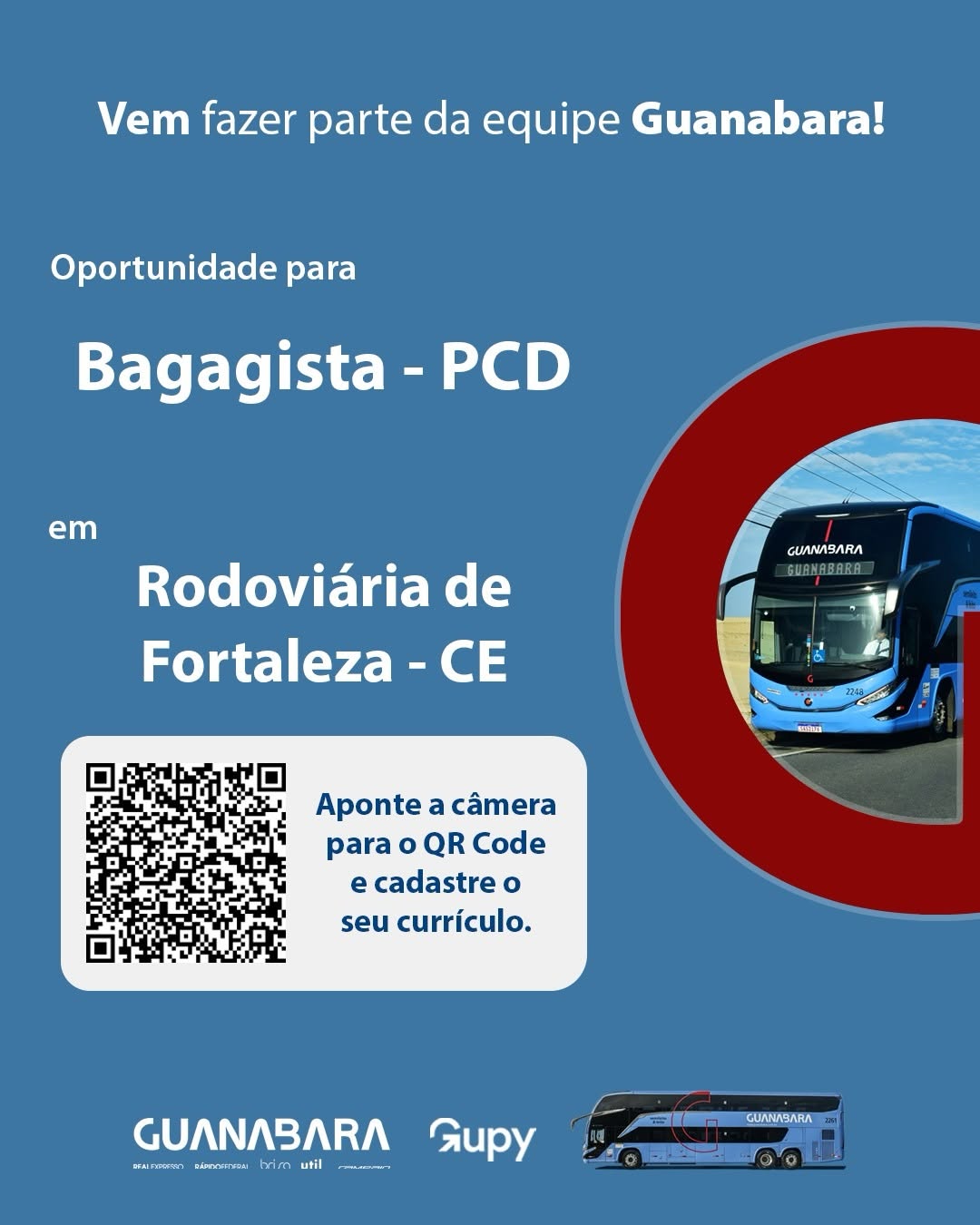 Aprendiz Administrativo, Mecânico Trainee, Bagagista, Auxiliar de Serviço Gerais, Bilheteiro, Auxiliar Administrativo
