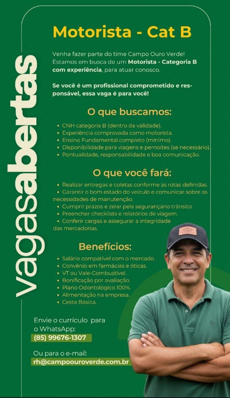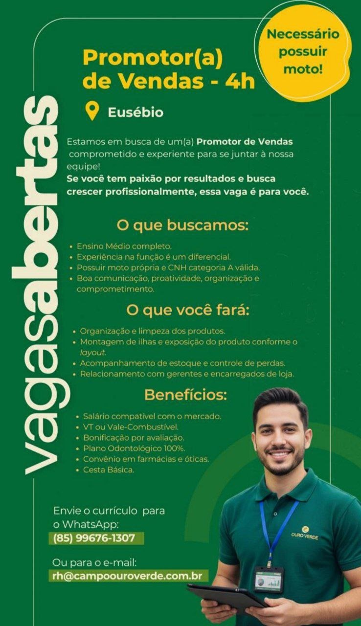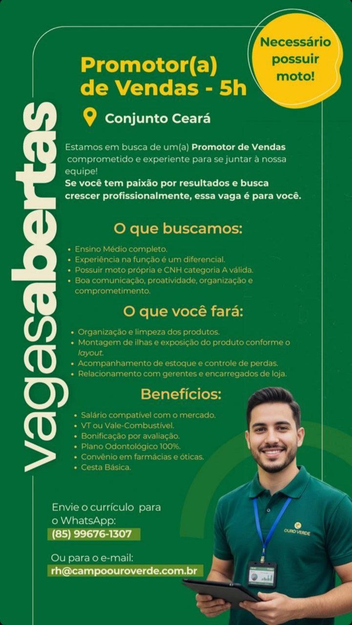 Aprendiz, Promotor(a) de Vendas, Motorista