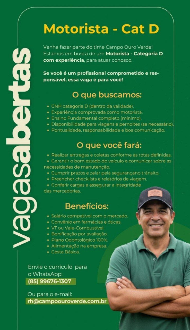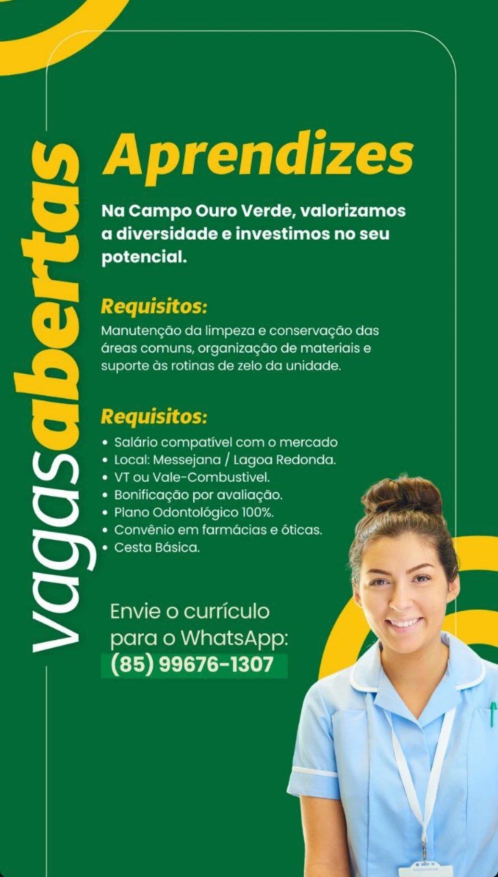 As vagas são divulgadas da mesma forma que recebemos. Não nos responsabilizamos pelas vagas, nem pelas informações fornecidas referente as mesmas, também não nos responsabilizamos pela idoneidade das empresas e instituições, apenas divulgamos as vagas que recebemos. Alertamos à buscar informações sobre as empresas que estão disponibilizando as vagas, através de contato por telefone ou e-mail divulgados nas mesmas, além de pesquisar na internet ou outros meios. Tome muito cuidado com locais (empresas ou instituições) que cobram taxas para garantir vagas ou para garantir uma colocação no mercado de trabalho. Esteja atento (a) a localização (endereço) da entrevista e do local de trabalho, se não conhecer ou achar que é um lugar isolado, vá com uma companhia ou não vá. Ter um emprego para garantir seu sustento e de sua família é importante, mas sua segurança e integridade também é, por isso, esteja atento. Se você é menor de idade vá acompanhado (a) de um (a) responsável.