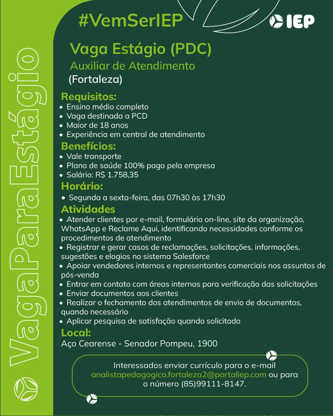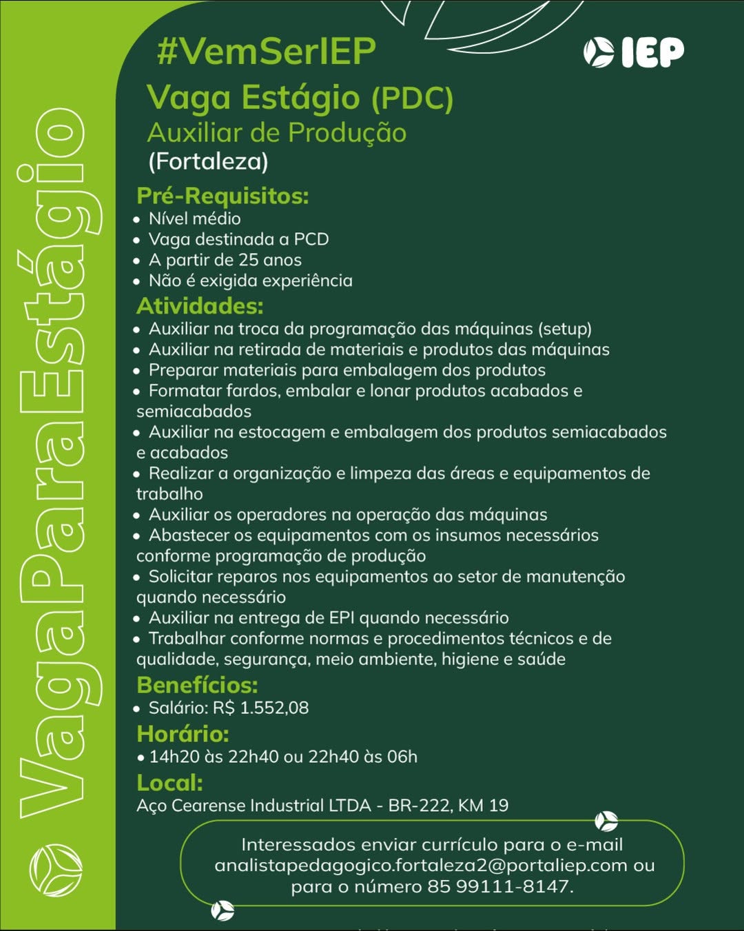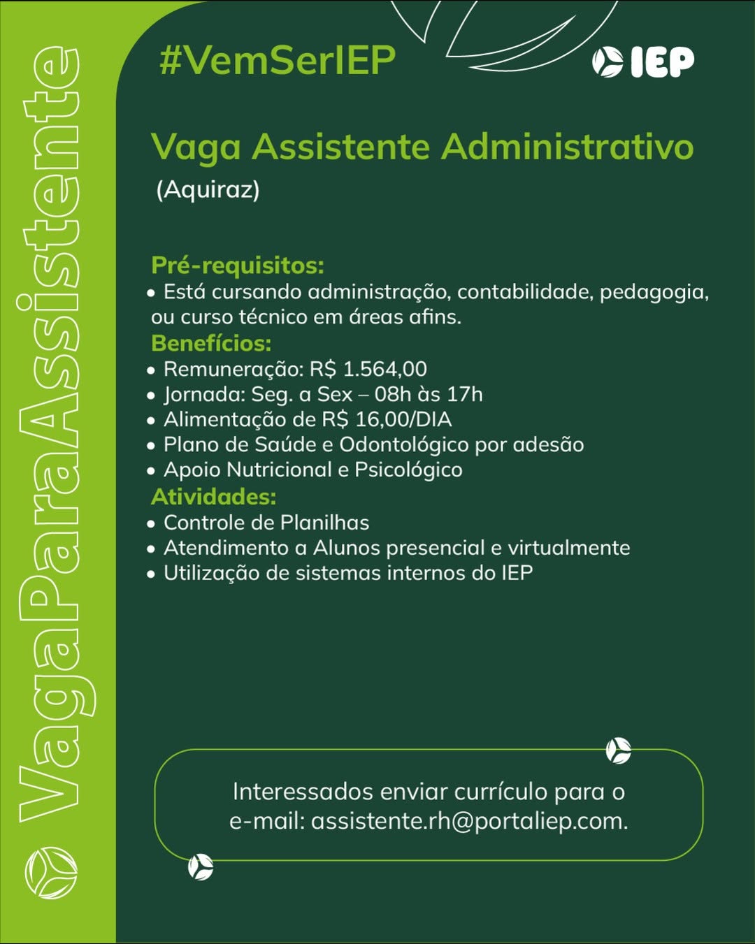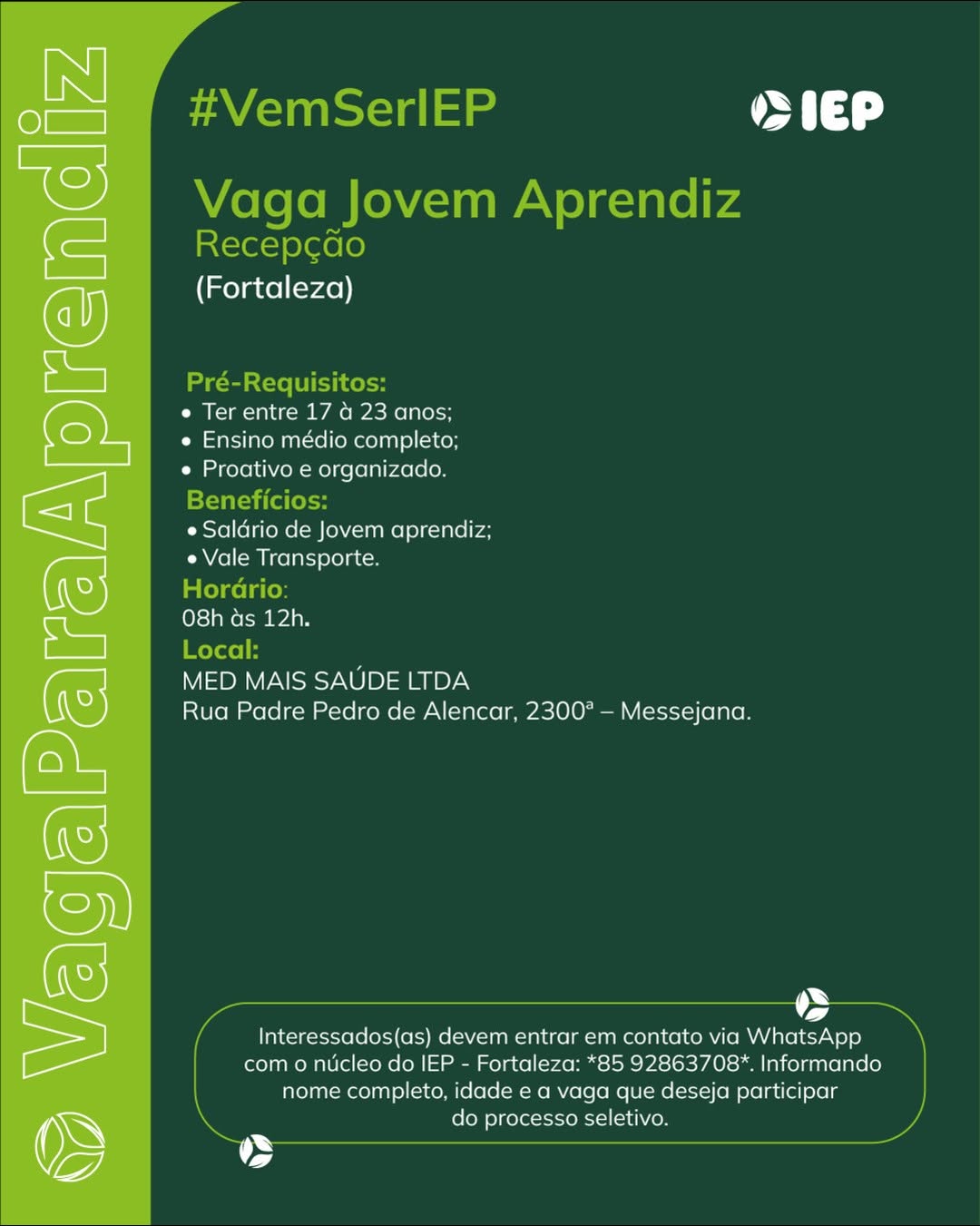 Assistente Administrativo, Jovem Aprendiz Repositor, Jovem Aprendiz Recepção, Jovem Aprendiz Logística, Jovem Aprendiz Administrativo, Estágio