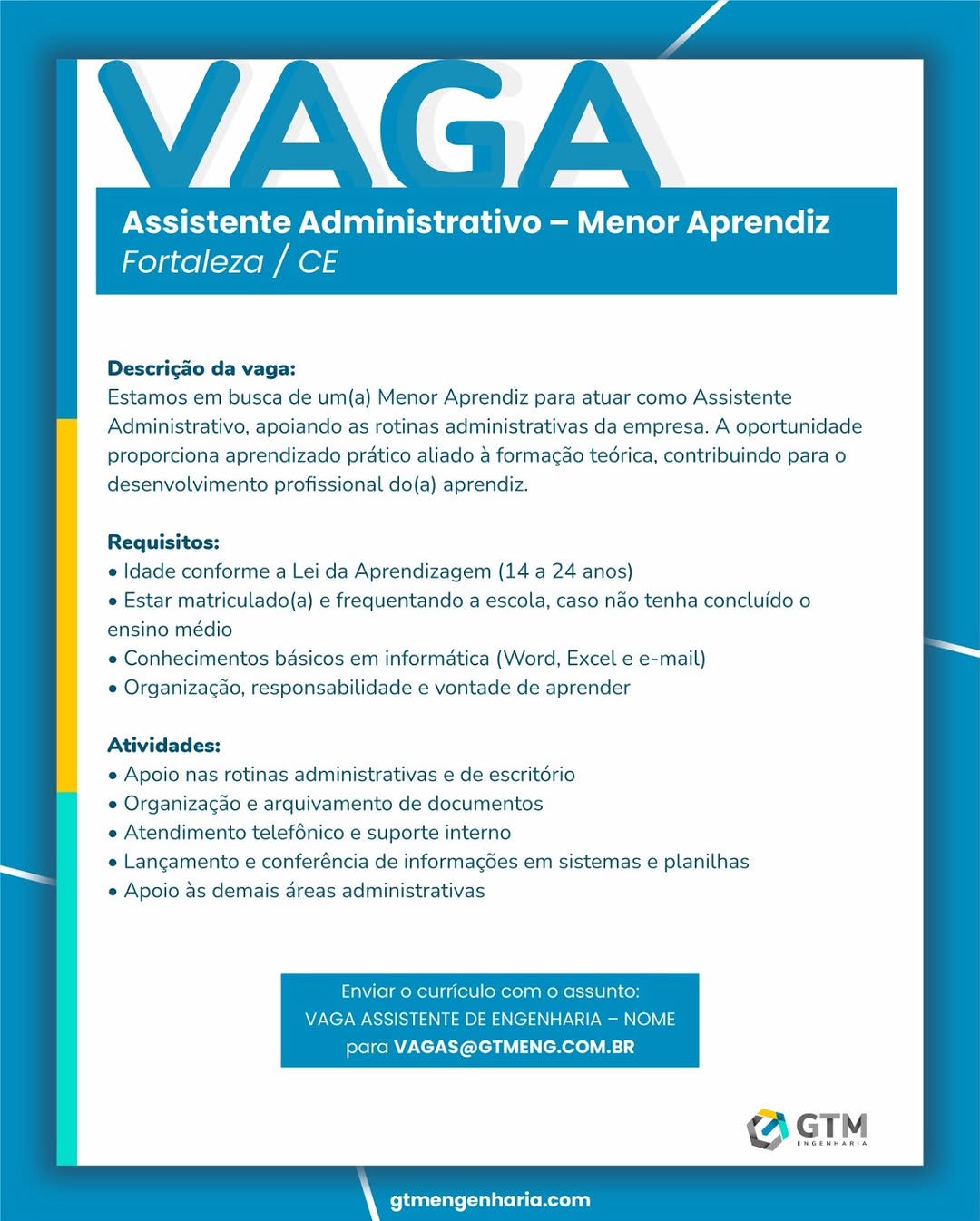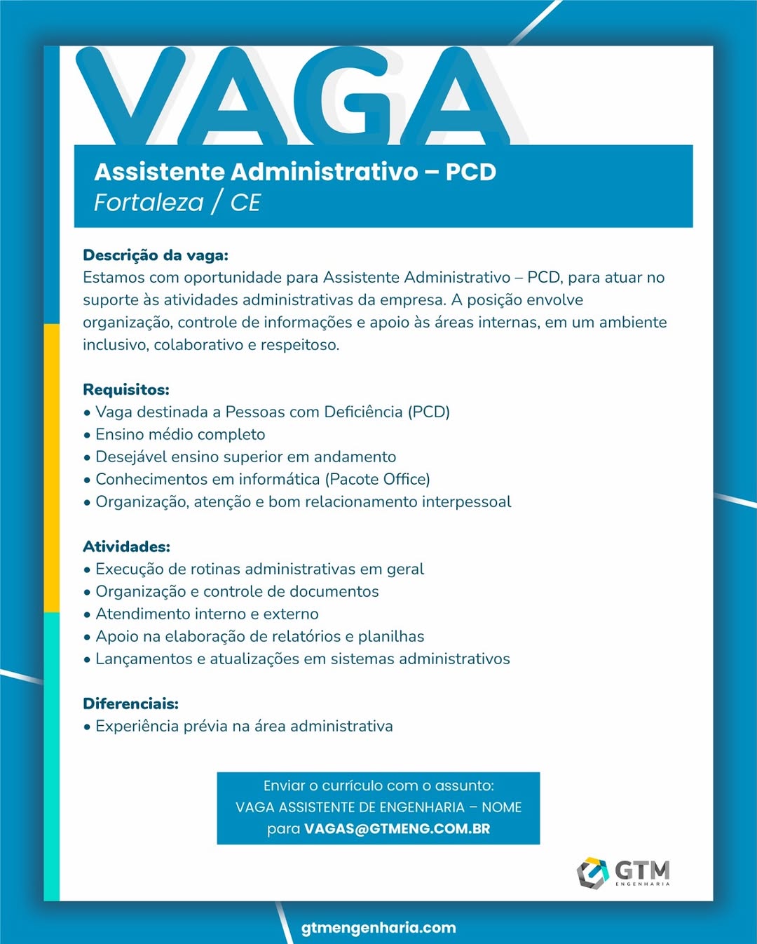 Assistente Administrativo PCD | Assistente Administrativo Menor Aprendiz