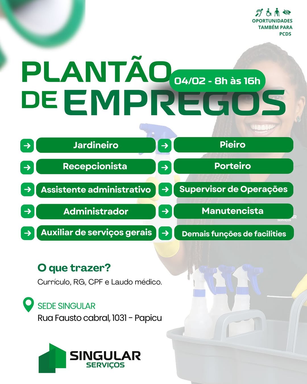 Assistente Administrativo, Recepcionista, Administrador, Auxiliar de Serviços Gerais, Porteiro, Jardineiro, Pieiro, Manutencista