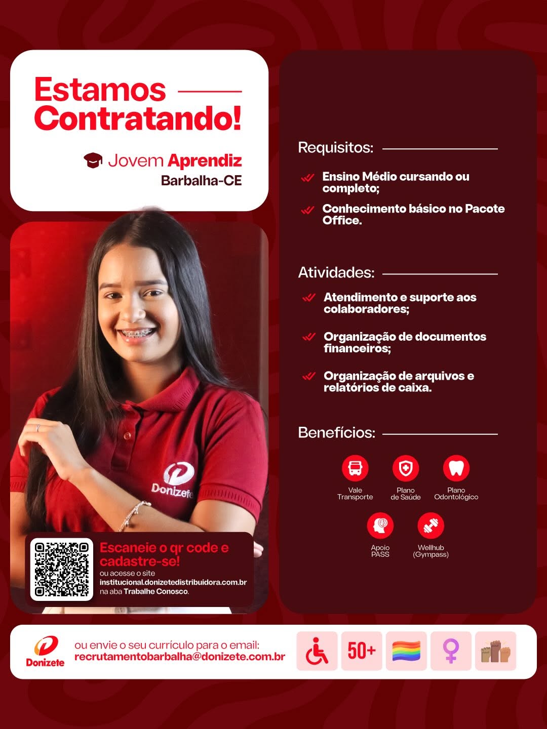 As vagas são divulgadas da mesma forma que recebemos. Não nos responsabilizamos pelas vagas, nem pelas informações fornecidas referente as mesmas, também não nos responsabilizamos pela idoneidade das empresas e instituições, apenas divulgamos as vagas que recebemos. Alertamos à buscar informações sobre as empresas que estão disponibilizando as vagas, através de contato por telefone ou e-mail divulgados nas mesmas, além de pesquisar na internet ou outros meios. Tome muito cuidado com locais (empresas ou instituições) que cobram taxas para garantir vagas ou para garantir uma colocação no mercado de trabalho. Esteja atento (a) a localização (endereço) da entrevista e do local de trabalho, se não conhecer ou achar que é um lugar isolado, vá com uma companhia ou não vá. Ter um emprego para garantir seu sustento e de sua família é importante, mas sua segurança e integridade também é, por isso, esteja atento. Se você é menor de idade vá acompanhado (a) de um (a) responsável.