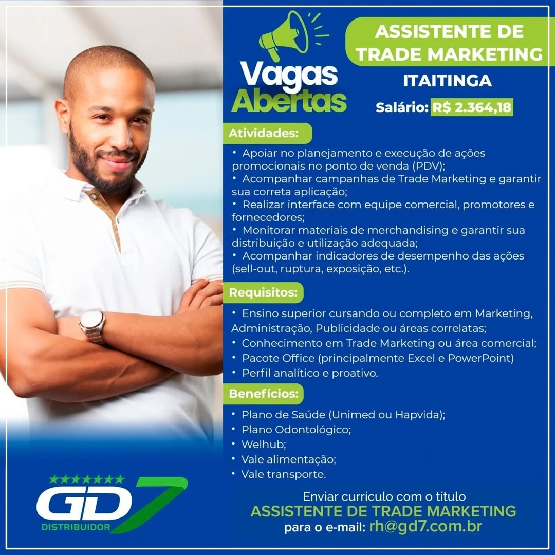 Assistente de Mídias Sociais, Coordenador de Trade, Estagiário Administrativo, Assistente de Trade Marketing, Auxiliar de Flow Rack