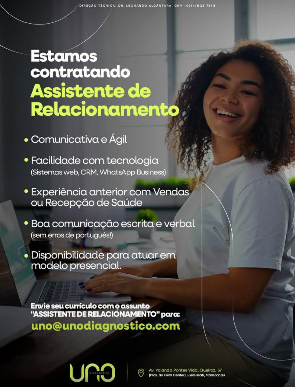 As vagas são divulgadas da mesma forma que recebemos. Não nos responsabilizamos pelas vagas, nem pelas informações fornecidas referente as mesmas, também não nos responsabilizamos pela idoneidade das empresas e instituições, apenas divulgamos as vagas que recebemos. Alertamos à buscar informações sobre as empresas que estão disponibilizando as vagas, através de contato por telefone ou e-mail divulgados nas mesmas, além de pesquisar na internet ou outros meios. Tome muito cuidado com locais (empresas ou instituições) que cobram taxas para garantir vagas ou para garantir uma colocação no mercado de trabalho. Esteja atento (a) a localização (endereço) da entrevista e do local de trabalho, se não conhecer ou achar que é um lugar isolado, vá com uma companhia ou não vá. Ter um emprego para garantir seu sustento e de sua família é importante, mas sua segurança e integridade também é, por isso, esteja atento. Se você é menor de idade vá acompanhado (a) de um (a) responsável.