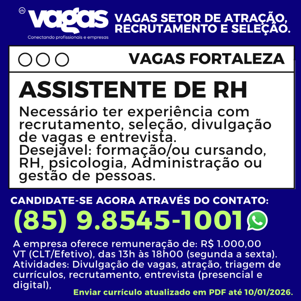 Desejável: formação/ou cursando, RH, psicologia, Administração ou gestão de pessoas.