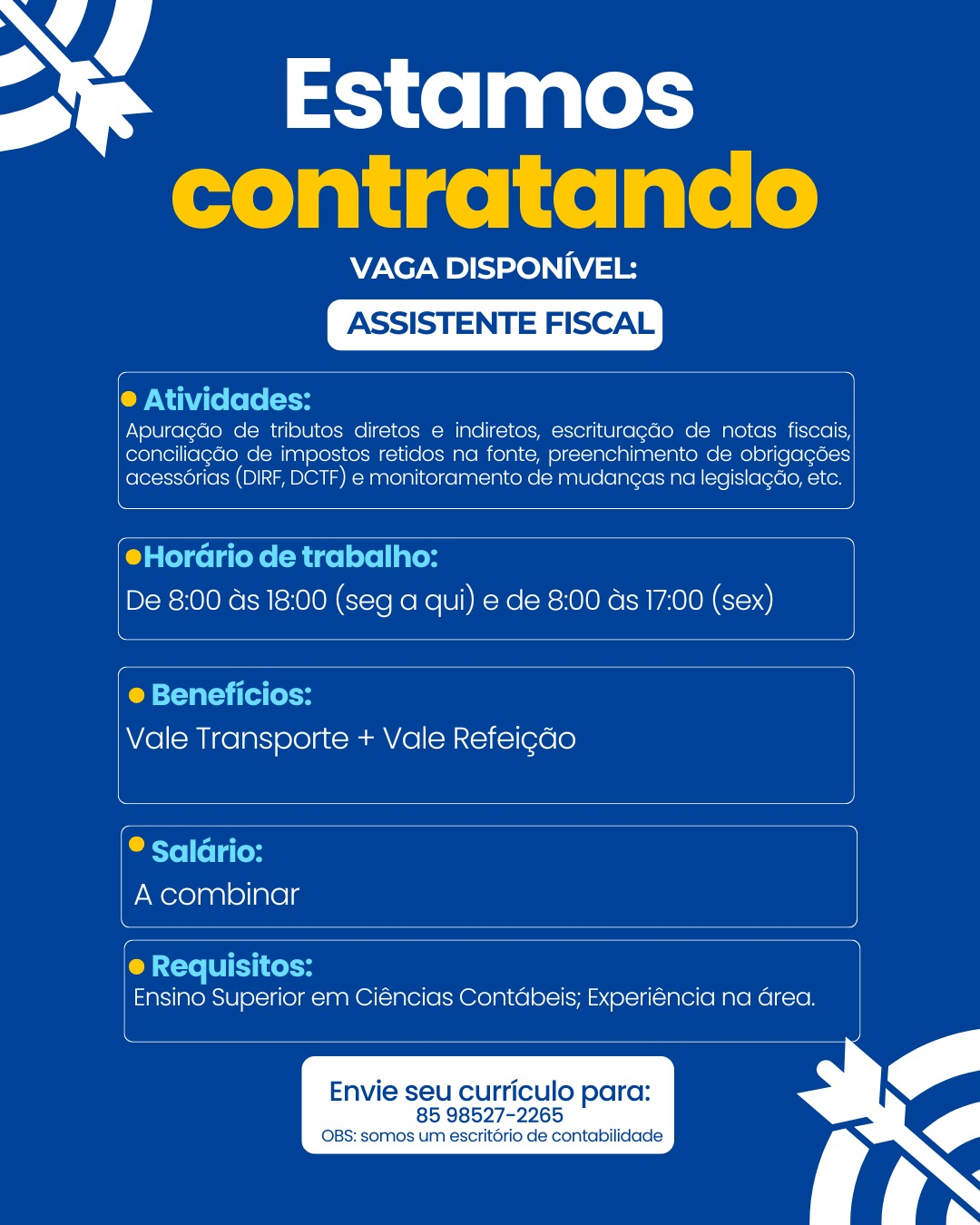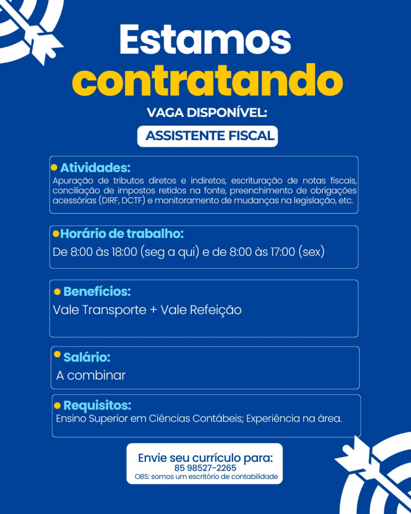 Envie o seu currículo através do contato de WhatsApp: (85) 9.8527-2265