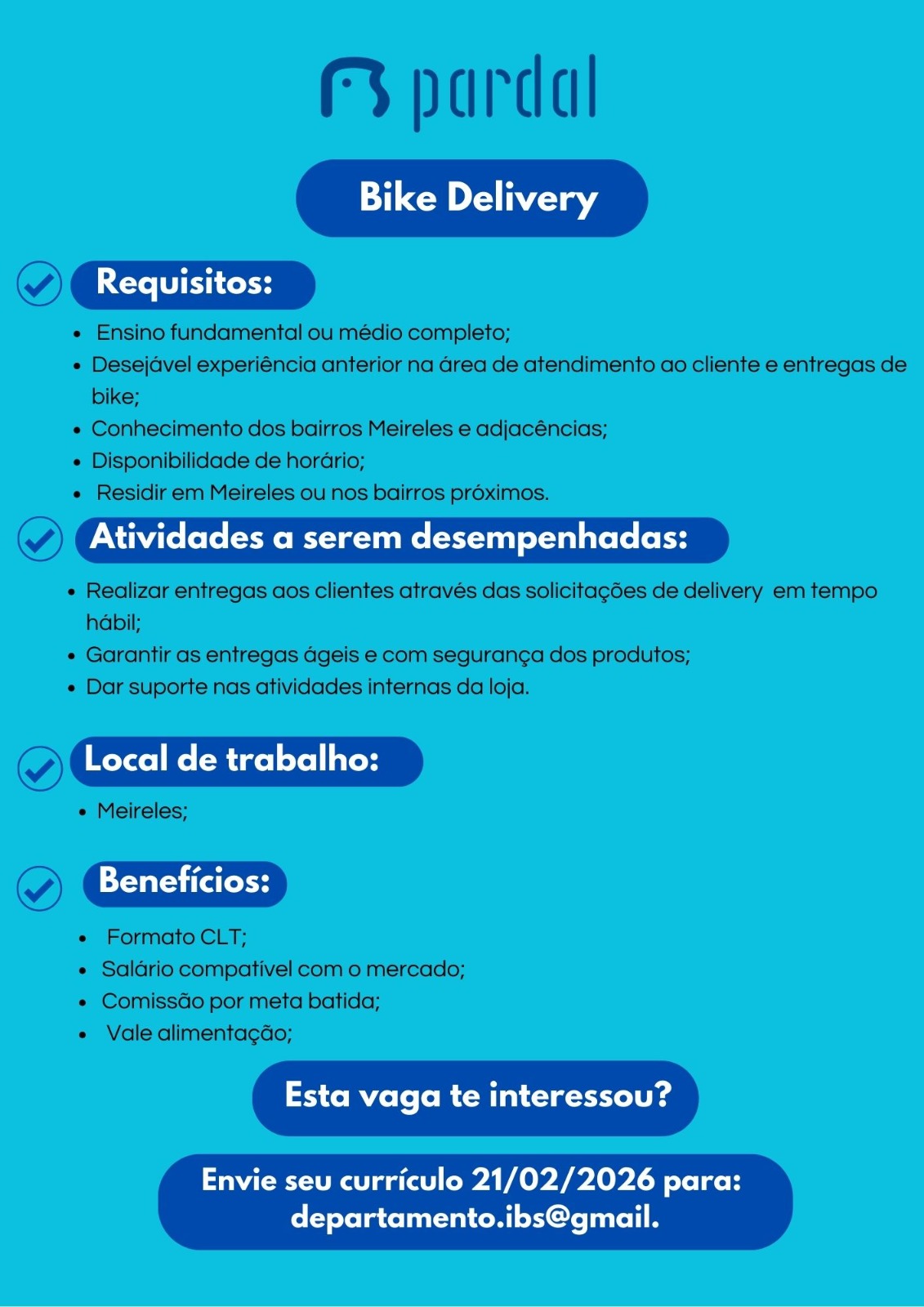 Atendente de Loja, Bike Delivery, Motoqueiro