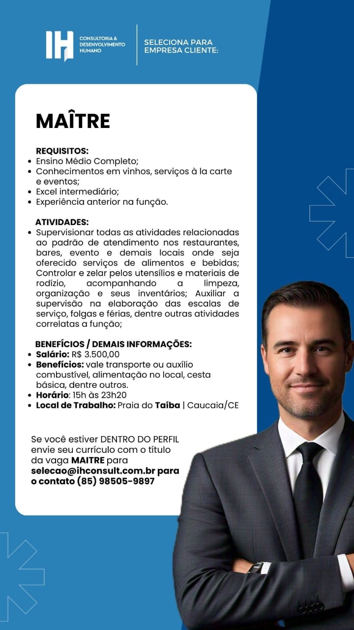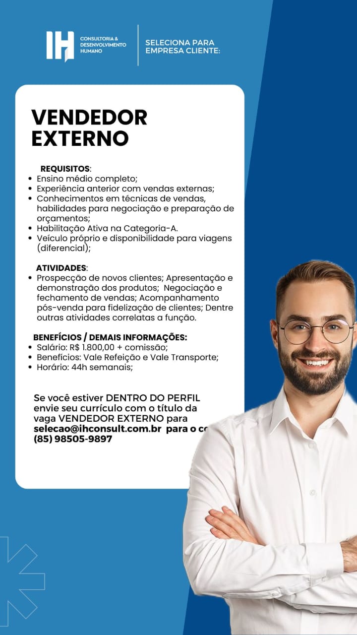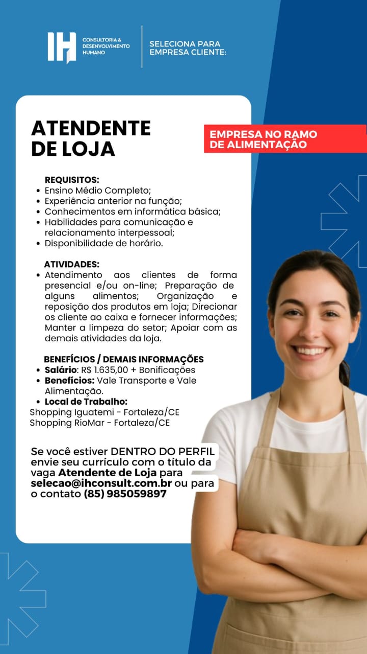 Atendente de Loja, Maître, Vendedor Externo