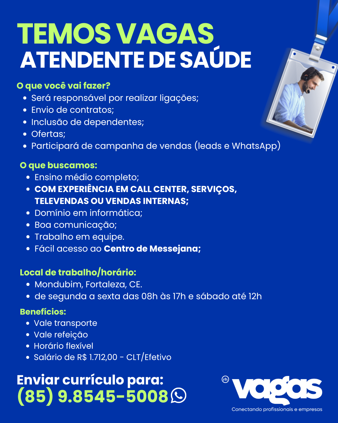 Enviar currículo para: (85) 9.8545-5008