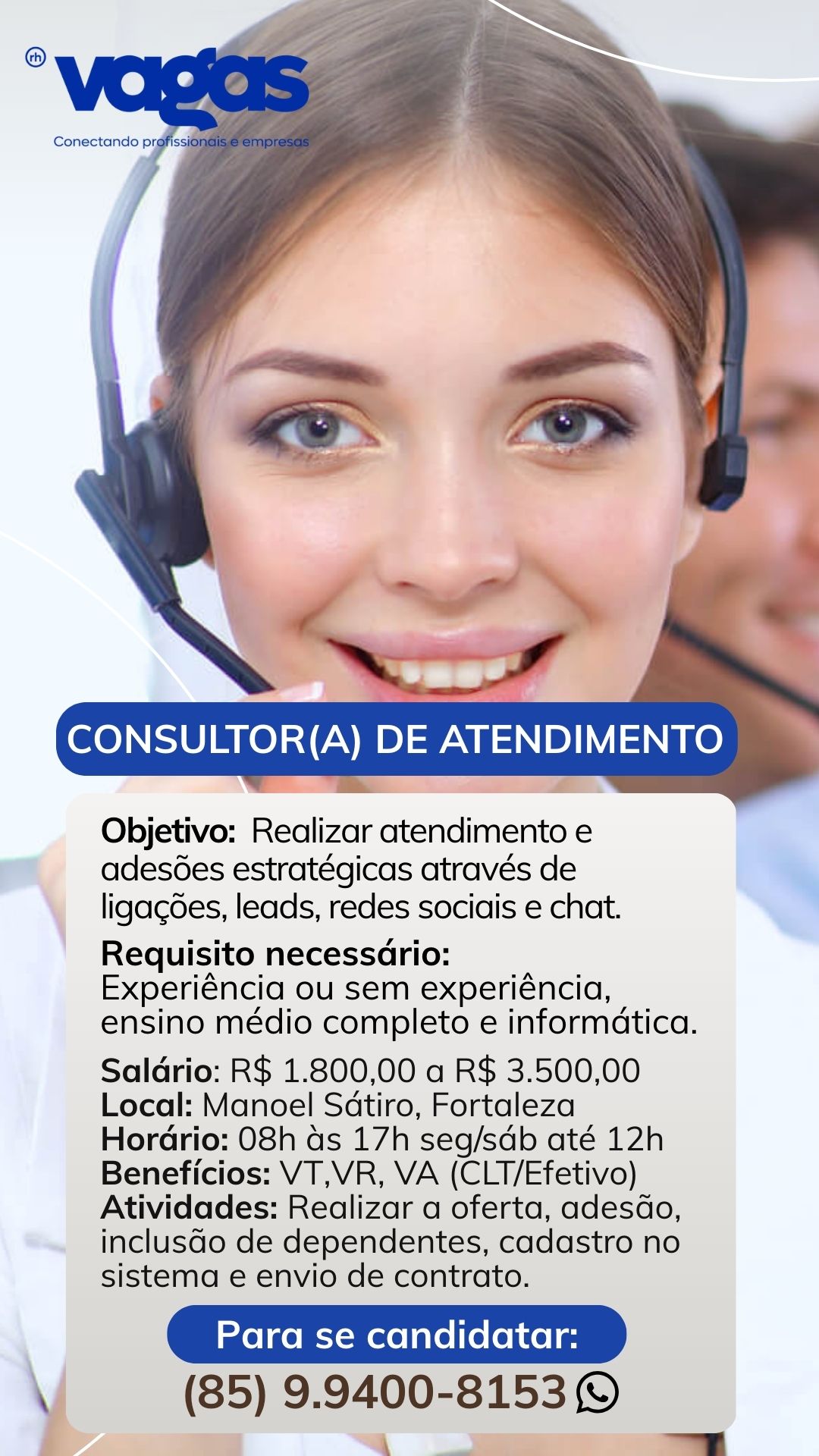 Envie o seu currículo atualizado para o contato: (85) 9.9400-8153